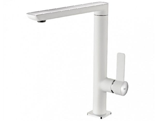 Врезной однорычажный кухонный смеситель Teka FO 915 (62915020BC) ультрабелый с поворотным изливом и рычагом сбоку.